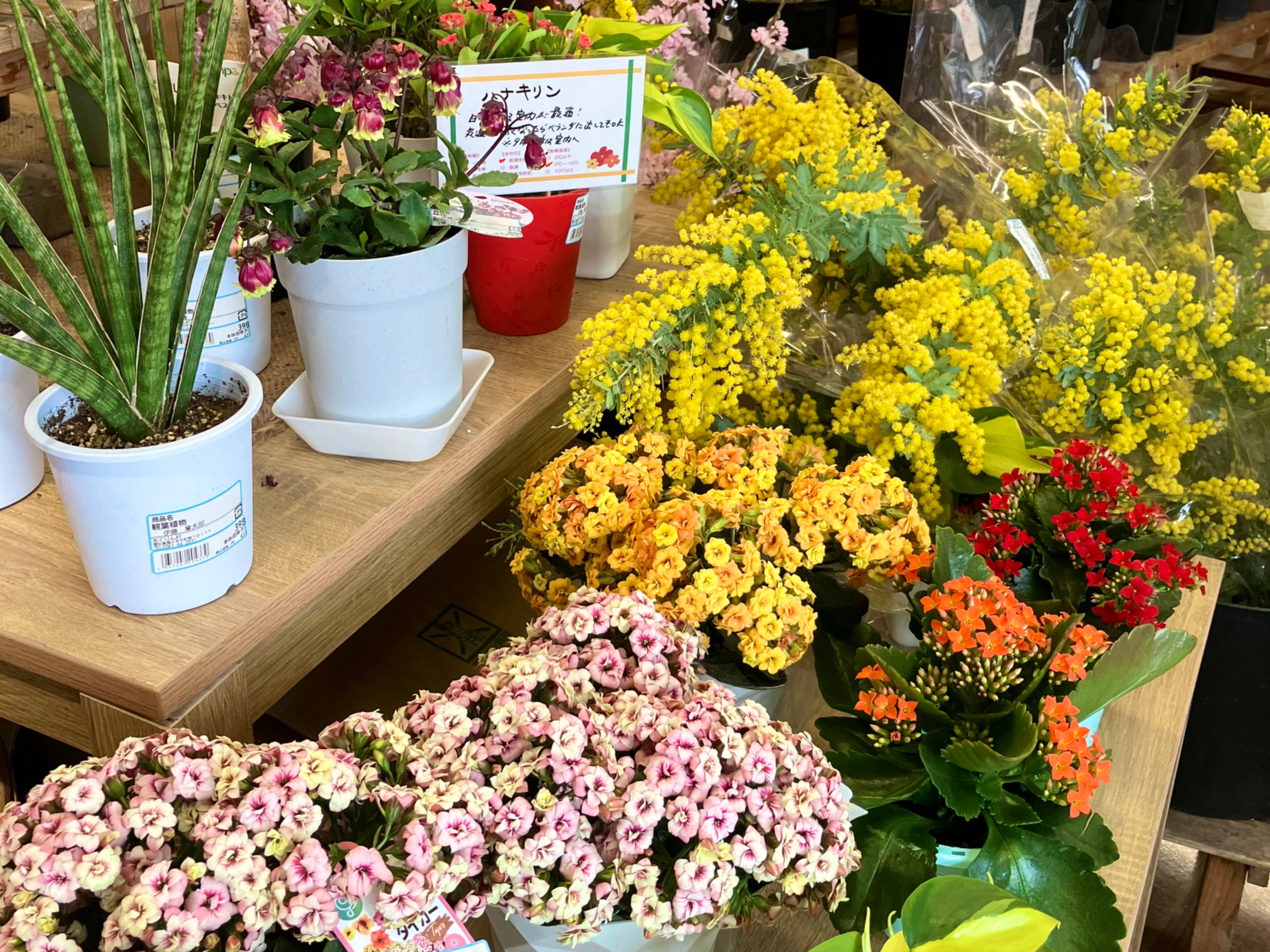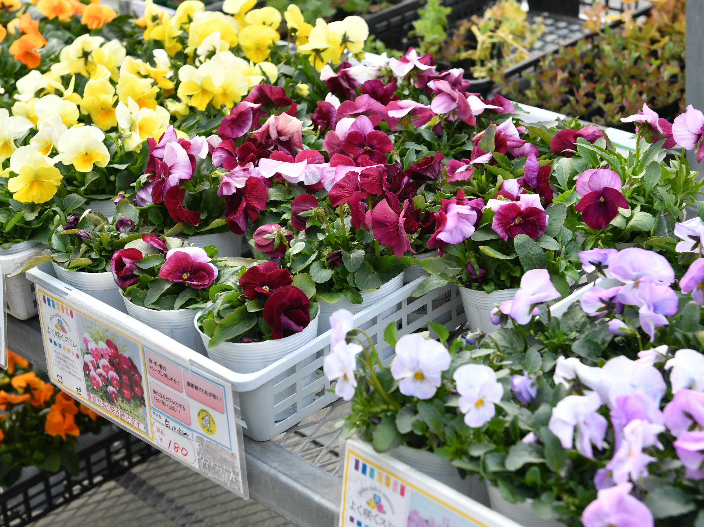 地元の農家さんが毎日直接持ち込む新鮮な農産物の直売所をはじめ、切り花も苗も扱うはな屋さん、