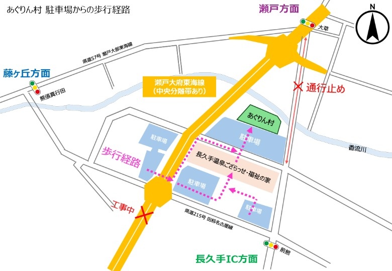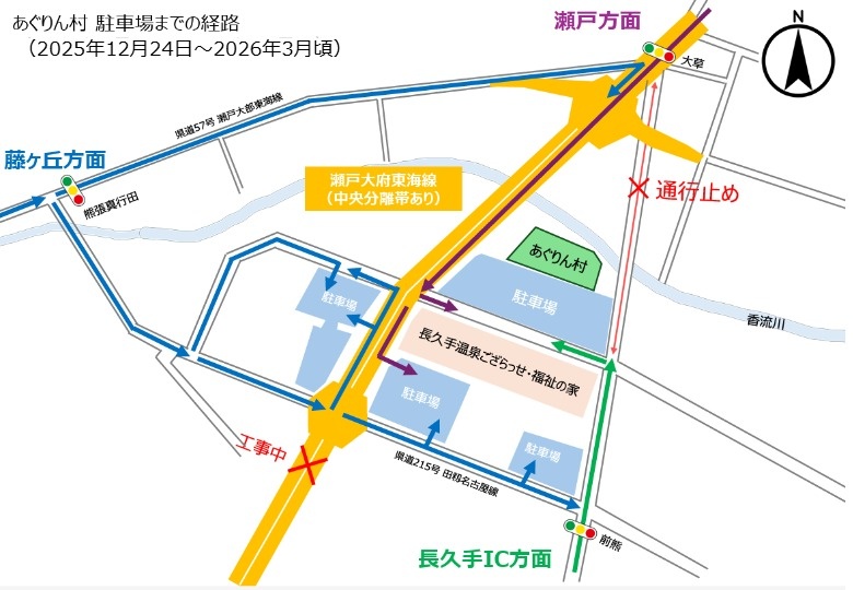 県道 瀬戸大府東海線道路工事に関連して、あぐりん村周辺での通行規制を予定しています。